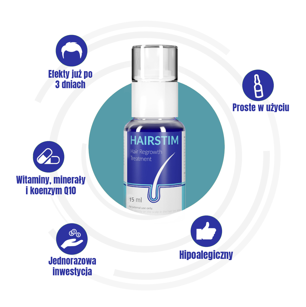 Z upływem lat nasze włosy stają się kruche i mają skłonność do łamliwości. W wyniku tego powstają na naszej głowie przerzedzenia, które niestety nie wyglądają atrakcyjnie. Na szczęście preparat Hairstim dzięki swoim unikalnym składnikom przywraca dawną strukturę włosa, wzmacnia go i odpowiednio nawilża nasze cebulki.
